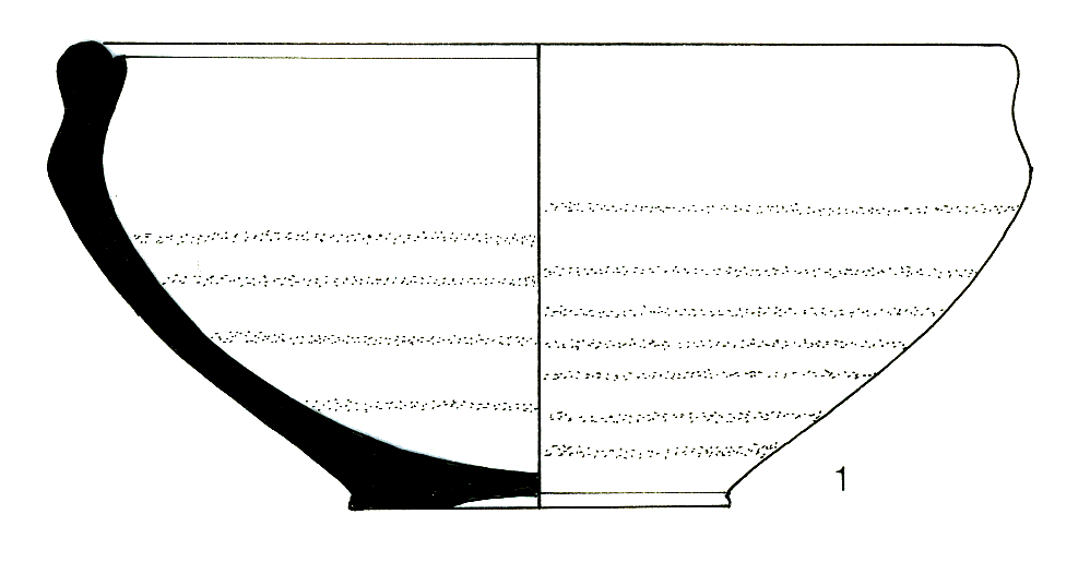 base élargie, assise concave ; céramique tournée, pâte de couleur grise, noire en surface ;