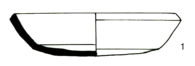 Assiette aux parois divergentes convexes ; lèvre en biseau ; base portante, assise convexe ; céramique tournée, couleur brune en surface et sur les cassures.