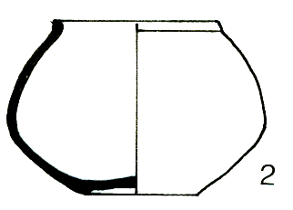 Pot de forme elliptique aplatie ; rebord incliné vers l'extérieur, lèvre ronde ; base portante, assise concave ; céramique tournée, pâte de couleur grise, noire en surface ; inclusions fines: quartz, traces de mica ; surface polie