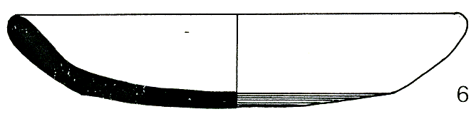 base portante, assise plane ; céramique tournée, pâte de couleur grise, noire en surface ;