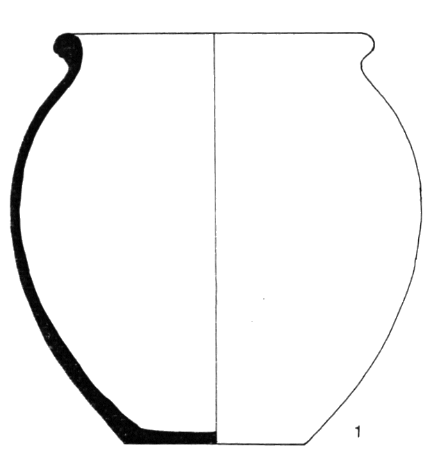 Pot de forme ovoide ; encolure verticale, concave, rebord épaissi à l'extérieur, lèvre ronde ; base portante, assise plane ; céramique tournée, couleur grise en surface et sur les cassures ; surface brute.