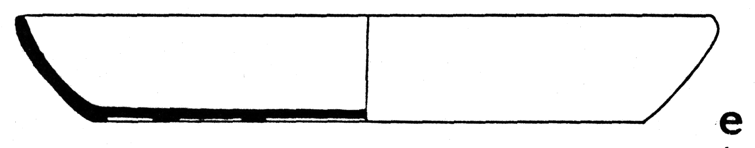 Type A 111 e : Ces assiettes possèdent une base étroite et un large diamètre à l'ouverture. La partie basse de la panse est nettement inférieure à la partie haute (rapport < 0.75) car le plus faible rayon de courbure se situe vers le bas de la panse. Les parois se raccordent à l'assise en formant un angle très ouvert. Elles s'opposent à celles du type A 111 d par le rapport diamètre de la base/hauteur qui est compris entre 3.5 et 6.2 (formes plus basse par rapport à la base).