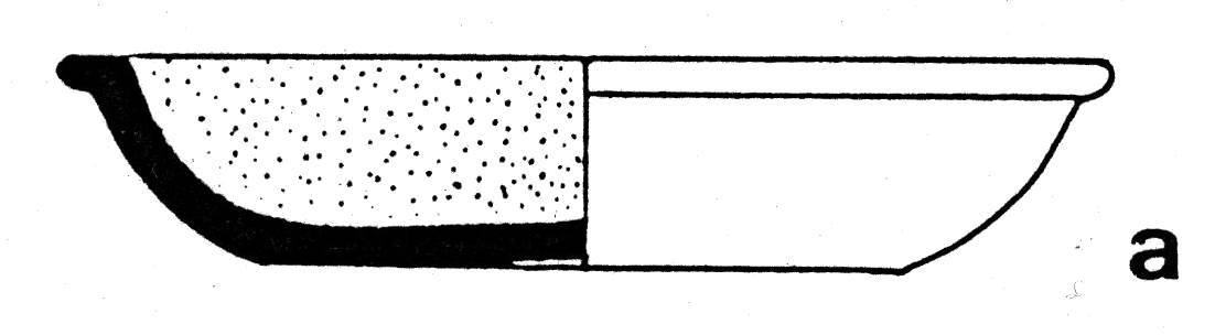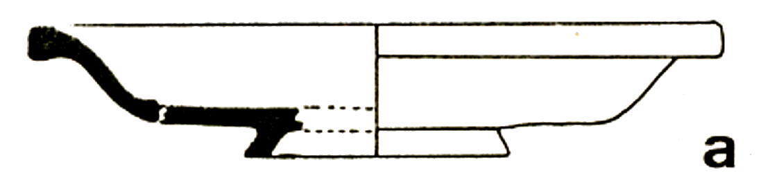 Type A 114 a : A Limoges, cet exemplaire revêtu intérieurement d'une couverte rouge provient d'un contexte de la fin du IIe ou du IIIe siècle. Quelques exemplaires connus ailleurs s'échelonnent entre le IIe et le IIIe s.
