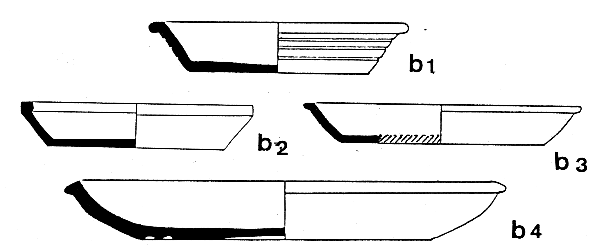 Type A 112 b : Ce type diffère du précédent en raison des parois plus obliques. Le rapport diamètre max./base dépasse presque toujours 1.4 ; en outre, le rapport diamètre max. - diamètre base/hauteur est supérieur à 0.75. Sa datation suggère les mêmes remarques que pour le type A 112 a.