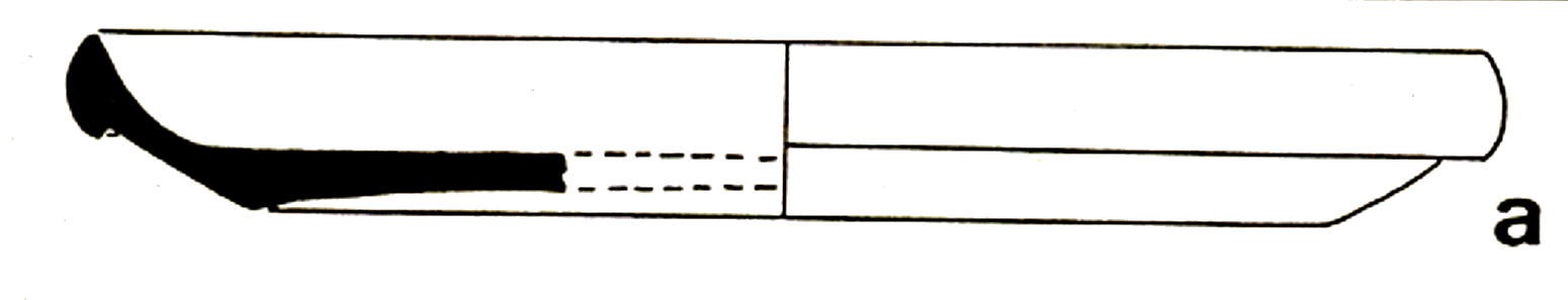 Type A 411 b : Ce type se signale du précédent par le bord moins élevé et oblique. Il provient d'un ensemble vraisemblablement augustéen. Il se rencontre d'ailleurs généralement un peu partout à cette époque sauf peut-être en Bretagne où il semble plus tardif.