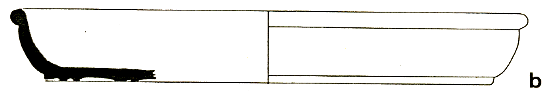 Type A 138 a : Outre les caractères précédents, les parois concaves caractérisent ce type. A Margerides (Corrèze), cette assiette doit dater du Ier siècle Comme c'est généralement le cas pour les formes comparables Connues en Charentes-Maritime ou dans le Pas-de-Calais.