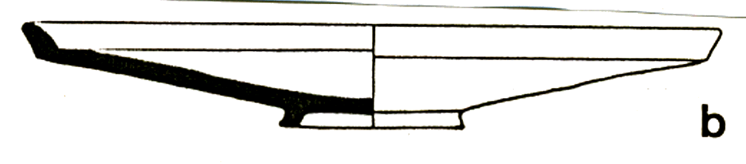 Type A 142 b : En raison de la courbure régulière des parois, le haut et le bas de la panse sont à peu près égaux. Ces deux assiettes datent de la fin du IIe ou du début du IIIe siècle.